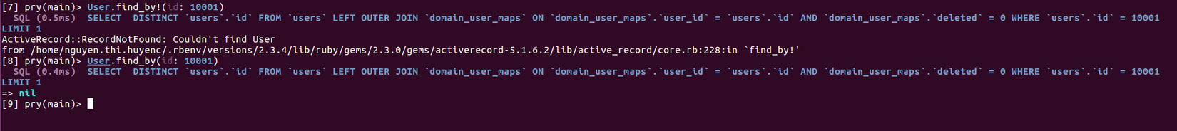Khi bạn sử dụng find_by! như ở ví dụ trên và đối tượng không được tìm thấy, ta sẽ nhận được một lỗi thông báo bắn ra RecordNotFound