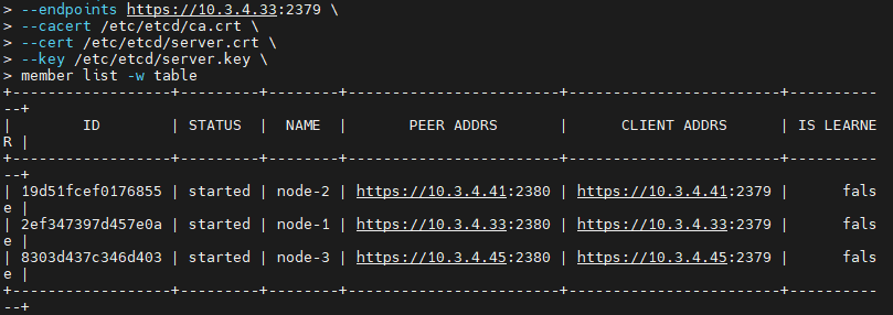 ETCD_INITIAL_CLUSTER="node-1=https://10.3.4.33:2380,node-2=https://10.3.4.41:2380,node-3=https://10.3.4.45:2380"