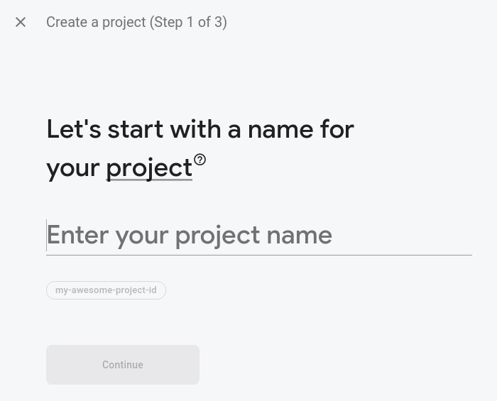 Sau đó điền tên của project vào và nhấn buton Continute: