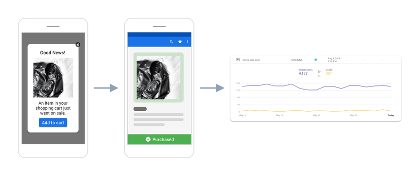 Bạn có thể kết hợp FIAM với Firebase Analytics để thu thập các thông tin về sở thích và mức độ hài lòng của người dùng với ứng dụng của bạn. Ví dụ: Đưa ra khuyến mại bằng nút hành động của mẫu Modal cho các mặt hàng giảm giá. Firebase cho bạn biết có bao nhiêu người dùng đã nhận được tin nhắn, bao nhiêu người đã click vào tin nhắn và bao nhiêu sự kiện chuyển đổi đã hoàn thành, chẳng hạn như mua hàng thương mại điện tử.
