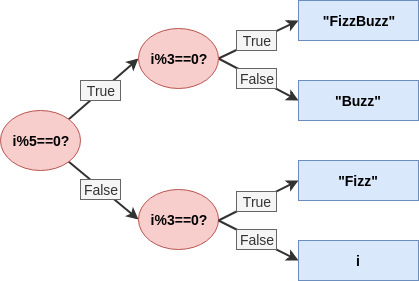 Bên cạnh đó, FizzBuzz còn chứa một vấn đề khá khó để có thể thể hiện đẹp đẽ sạch sẽ trong code, đó là phải check nhiều điều kiện. Nếu số hiện tại chia hết cho 3 thì làm 1 việc A, nếu chia hết cho 5 thì làm việc B, nếu chia hết cho cả hai thì lại làm một việc C, còn lại thì làm một việc khác ...