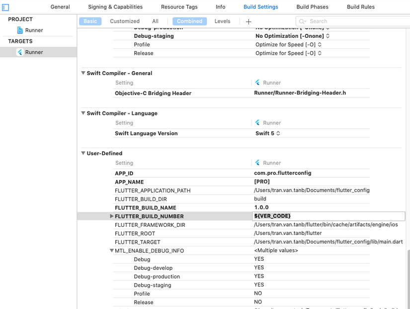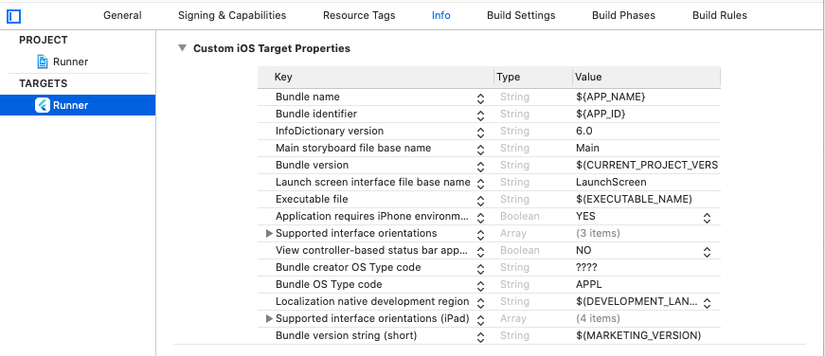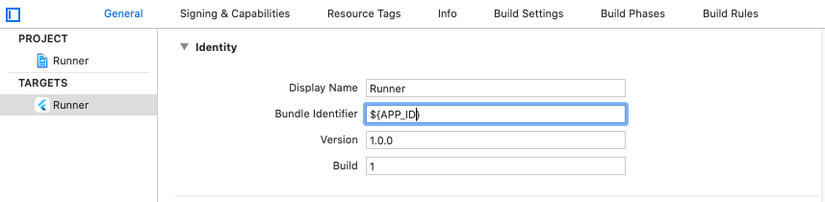 Đổi value của Bundle Identifier và Bundle name thay đổi lần lượt thành ${APP_ID} và ${APP_NAME}