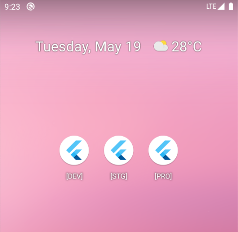 Tương tự như IOS, khi chạy ở các môi trường khác nhau ta được 3 ứng dụng khác nhau: