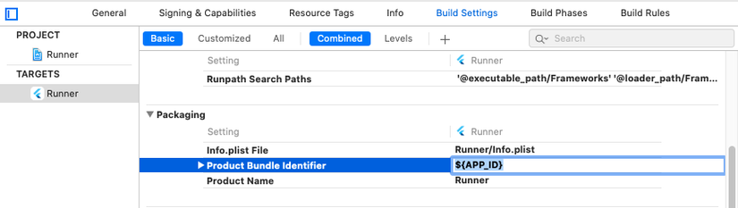 - Packaging -> Product Bundle Identifier: ${APP_ID}