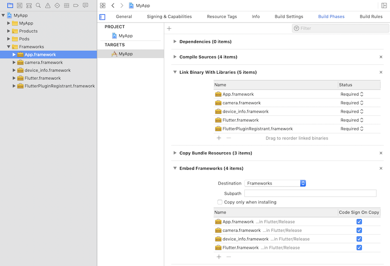 flutter build ios-framework --output=some/path/MyApp/Flutter/