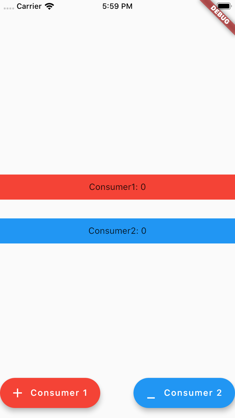 Việc bạn nhấn nút button sẽ thực hiện gọi hàm notifyListeners() dẫn đến việc các Widget được bọc trong các Consumer1 và Consumer2 được build lại, điều này thật sự ko tốt cho perfomance hoặc làm các chức năng có logic phức tạp dễ sinh ra bug.