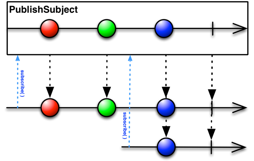 Đối với PublishSubject nó sẽ bỏ qua tất cả giá trị phía trước và chỉ nhận các giá trị sau đó