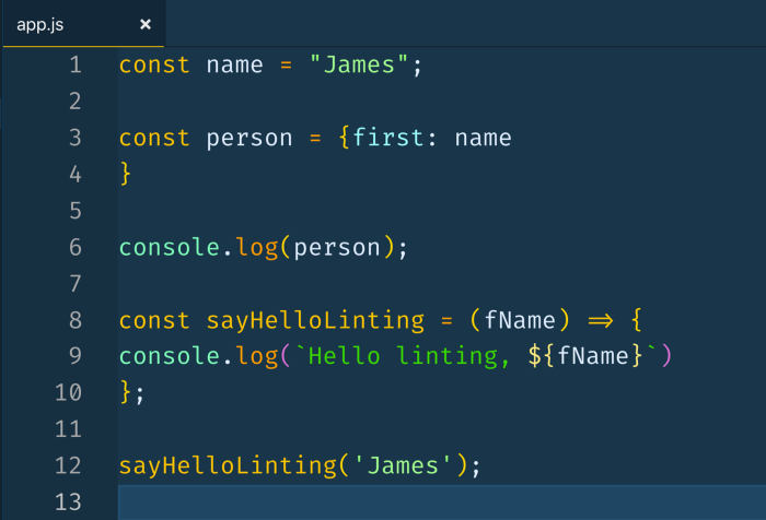 - Ngoặc đóng của const person phải nằm trên cùng 1 dòng với nó trong trường hợp này