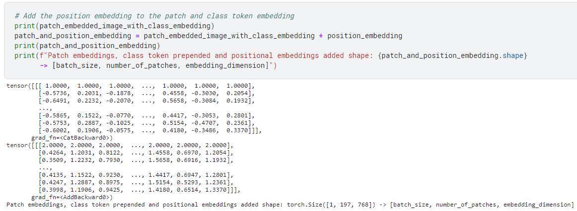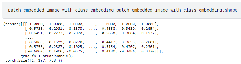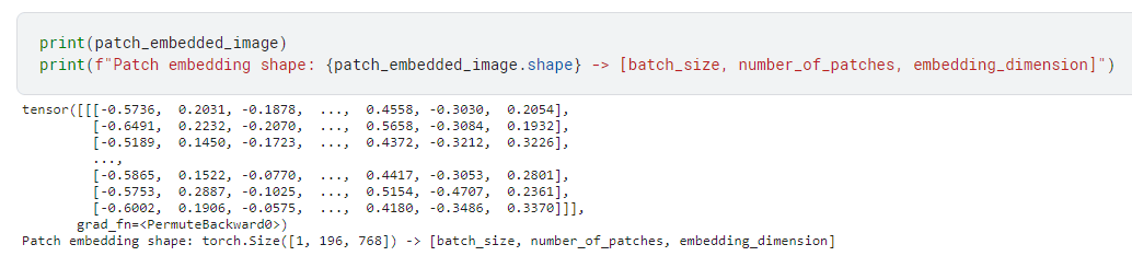 - Linear projection of flattened patches (Embedded Patches) : Các patches được chuyển thành Embedding, lợi ích của việc sử dụng Embedding thay vì chỉ các giá trị hình ảnh. Embedding là một biểu diễn có thể học được (thường ở dạng vector) của hình ảnh.