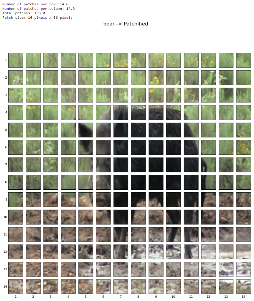 - Flattened patches là các miếng ảnh đã được làm phẳng và chuyển thành các vector một chiều. Mỗi miếng ảnh có kích thước nhỏ hơn so với ảnh gốc, nhưng vẫn giữ được các thông tin cơ bản về màu sắc, độ sáng, độ tương phản,..