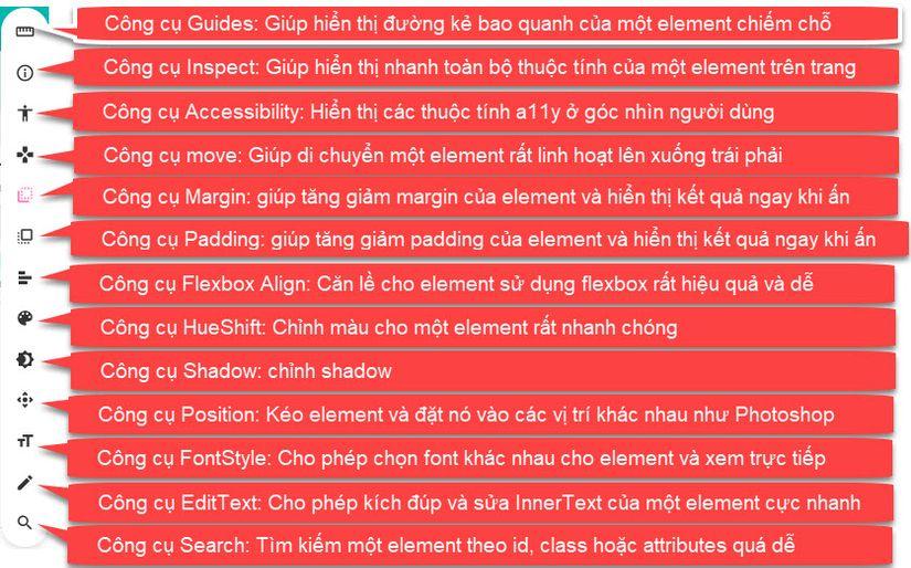 Margin/Padding - Giúp tăng giảm margin/padding của element và hiển thị kết quả ngay khi ấn