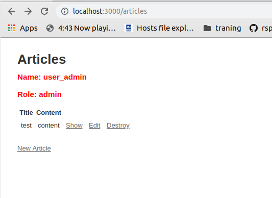 Ở đây mình có 1 user với role là admin: thì sẽ k có quyền xóa Article. Như vậy thì đẩy ra ngoại lệ như thế này: