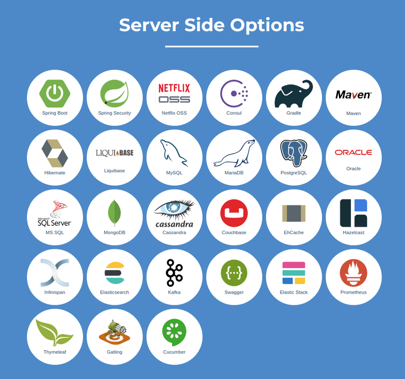 Ở bài viết này mình sẽ giới thiệu đến các bạn Jhipster. Đây là một công cụ rất hữu ích giúp các bạn có thể tạo ra 1 project java web một cách nhanh chóng và đầy đủ các chức năng cần thiết. Jhipster hỗ trợ cho chúng ta rất nhiều công nghệ khác nhau. Phía Backend bạn thể dùng nhiều công nghệ như Spring boot, Spring Sercurity, Maven, Grandle,... Phía Frontend bạn có thể dùng các framework như React, Angular, VueJs, ... Bạn cũng có thể sử dụng nhiều loại cơ sở dữ liệu khác nhau cả Sql và NoSql như MySql, Cassandra, MongoDb,... Sau khi generate code bạn còn có thể tùy chọn việc deloy code của mình lên server, Jhipster hỗ trợ nhiều cách khác nhau như: Docker, Aws, HeroKu, Google Cloud Flatform,... ![]()  ![]()  ![]()
