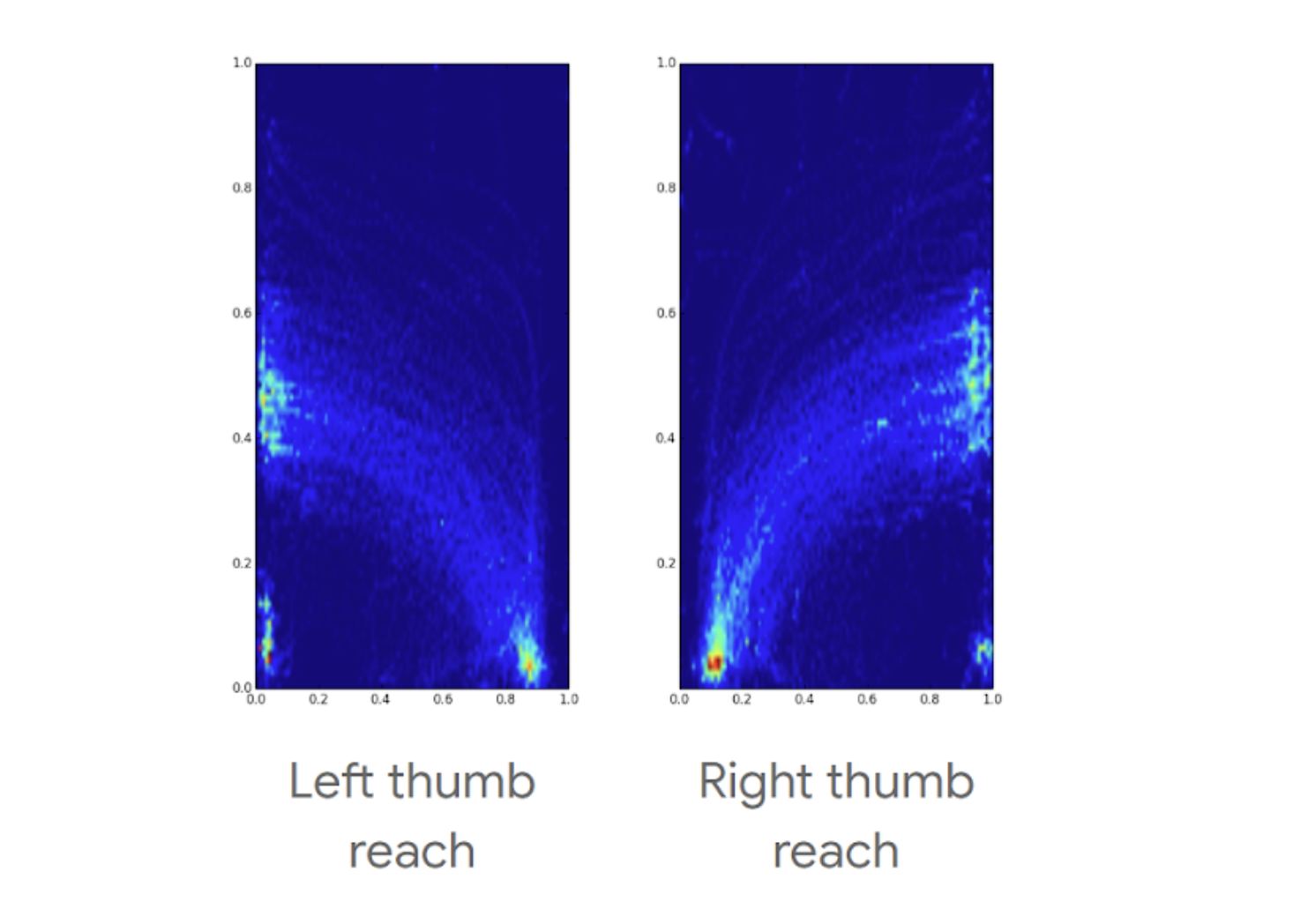 Bản đồ nhiệt màn hình điện thoại cho thấy người dùng có thể thoải mái thực hiện các cử chỉ, cầm điện thoại chỉ bằng một tay