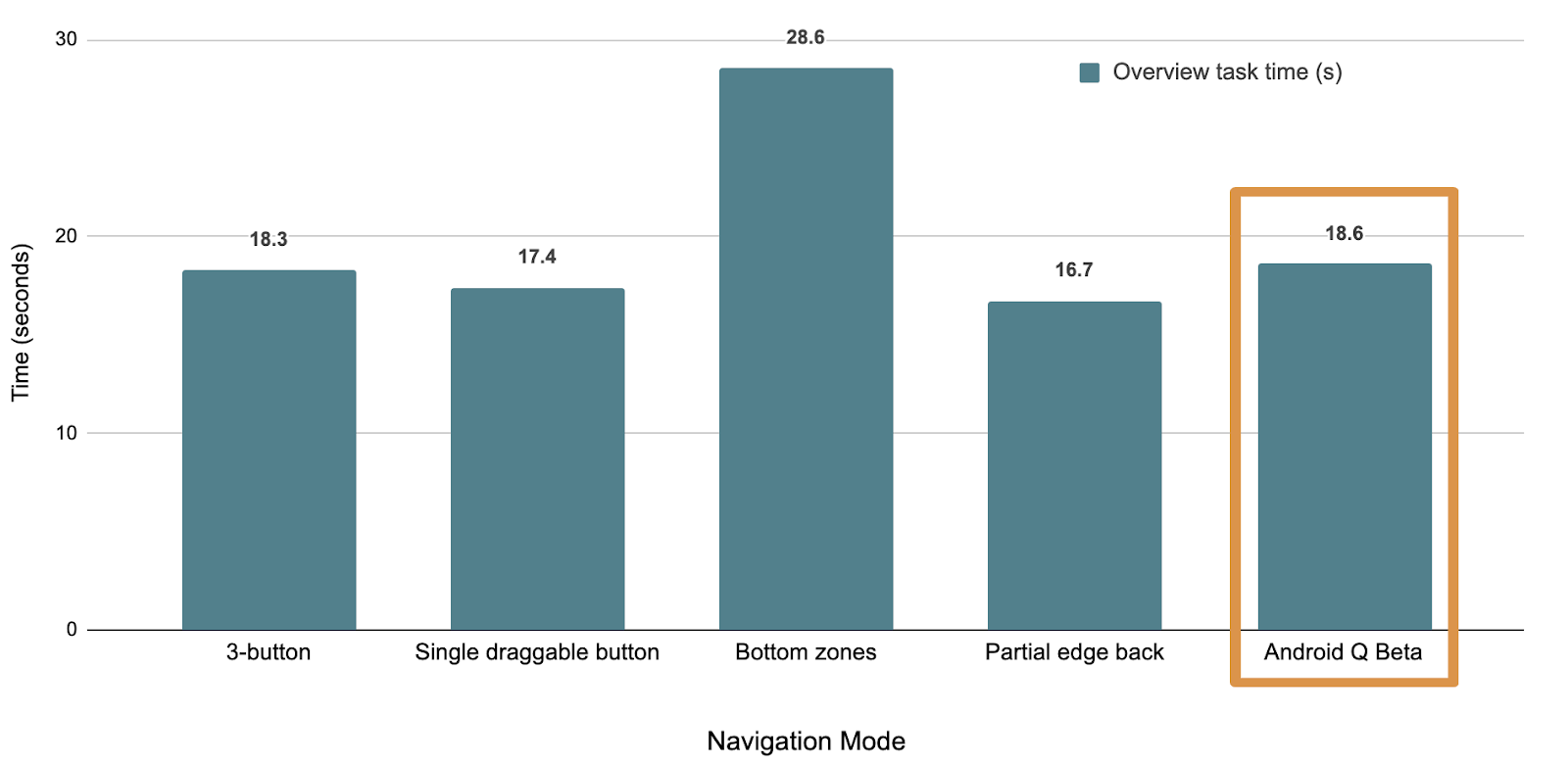 So sánh thời gian trung bình cần thiết để hoàn thành các tác vụ Tổng quan / Gần đây trên các chế độ điều hướng khác nhau (thấp hơn là tốt hơn)