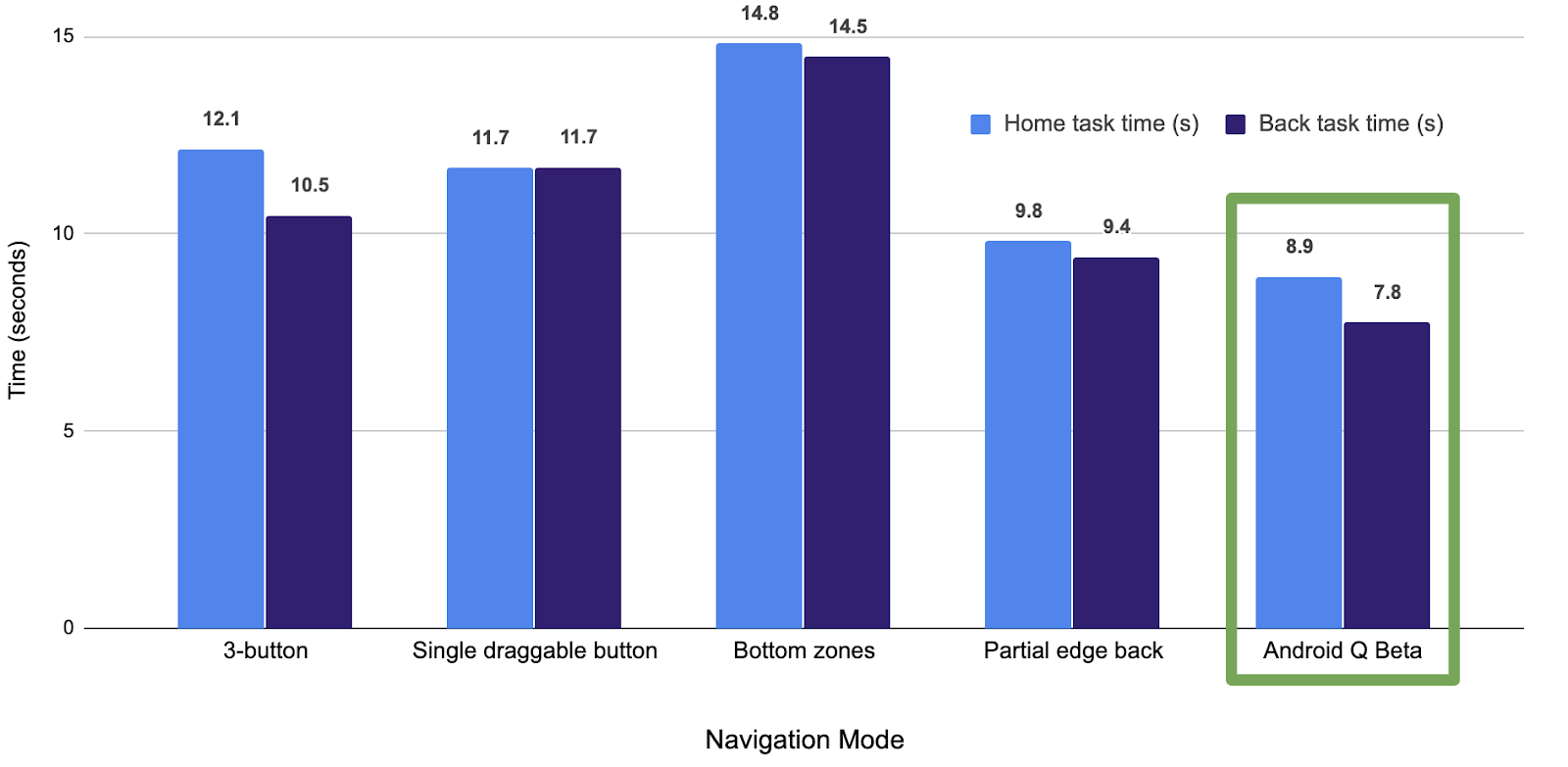 So sánh thời gian trung bình cần thiết để hoàn thành các tác vụ Home / Back trên các chế độ điều hướng khác nhau (thấp hơn là tốt hơn)