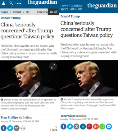 Trang không có AMP (bên trái) trông hấp dẫn trực quan nhờ thiết kế responsive. Tuy nhiên, có khá nhiều elements khi trang có sự hỗ trợ AMP(bên phải) sẽ bị thiếu(vì nó giúp tăng tốc độ và hiệu suất mà). Thanh menu của trang bên phải chi tiết hơn (với icon tìm kiếm, menu dạng breadcrums và nút menu thu gọn), các nút share mạng xã hội của phiên bản AMP có thể được truy cập cùng một lúc và dễ dàng nhấn hơn, giúp đơn giản hóa việc chia sẻ.