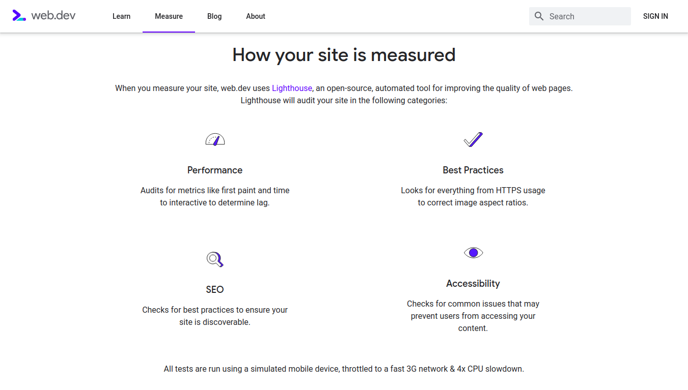 Đây là một công cụ tốt để kiểm tra tốc độ và hiệu suất website. Có một số tính năng bổ sung mà bạn sẽ không tìm thấy trong Web.dev.