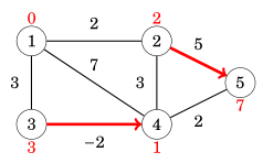 Ở vòng lặp số 2, cạnh (2, 5) và (3, 4) là các cạnh tối ưu: