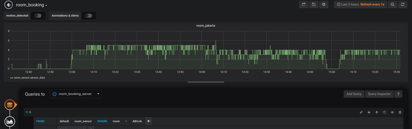 Để tiện thể cho việc theo dõi dữ liệu của từng phòng họp chúng tôi tích hợp một công cụ visualization data nổi tiếng đó là Grafana. Sự kết hợp của Grafana và InfluxDB được coi là một cặp đôi rất ăn ý. Grafana cho phép truy xuất dữ liệu theo từng giờ, từng ngày, tuần, tháng, năm ....