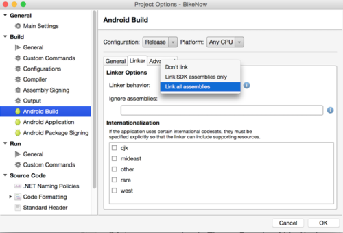 Nếu bạn kiểm tra tài liệu chính thức về Linking on Android & Linking on iOS, nó sẽ chỉ cho bạn cách thực hiện thao tác này . Cơ chế chính để điều khiển Linker là Linker Behavior (Linking trong Visual Studio) . Đi vào hộp thoại Project Options , có 3 tuỳ chọn :