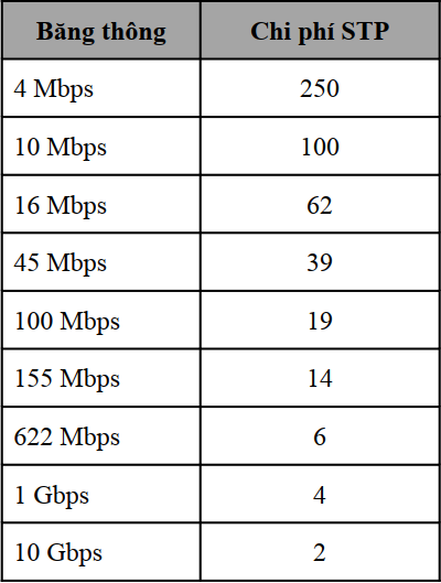 • Chi phí đường đi (path cost) được sử dụng để đánh giá đường đi từ các switch khác về root bridge( Root bridge được coi như 1 gốc trong cây spanning tree còn các switch khác được coi như các nhánh)