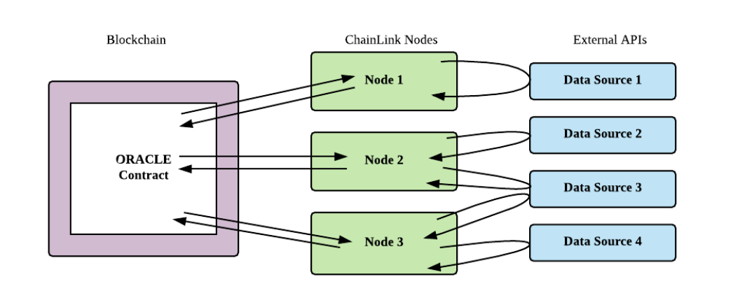 Chainlink là một mạng phi tập trung (decentrailized) với nhiều oracle node. Để đảm bảo dữ liệu cung cấp từ API không bị giả mạo hay thao túng, cần có một cơ chế oracle contract chọn ra giá trị thích hợp để trả về cho user contract từ giá trị trả về của các oracle node khác nhau (vốn lấy dữ liệu từ nhiều nguồn khác nhau).
