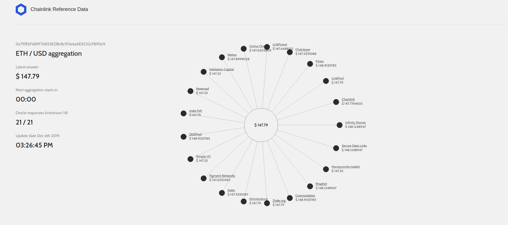 Tỷ giá ETH/USD được lấy ra từ ít nhất 14 oracle node với các giá trị khác nhau