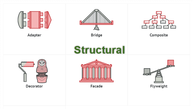 -> Những Design pattern loại này liên quan tới class và các thành phần của object. Nó dùng để thiết lập, định nghĩa quan hệ giữa các đối tượng.