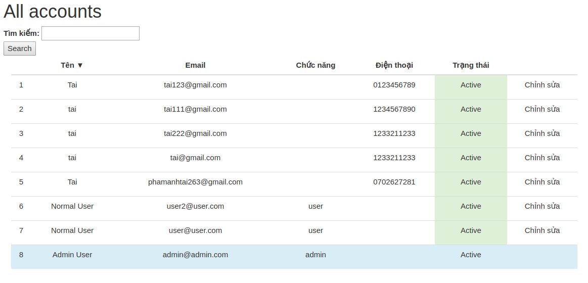 Để cho dễ hiểu thì mình xin bỏ qua phần lý thuyết và ứng dụng vào project nhỏ nhỏ luôn nhé. Ở đây mình sẽ hướng dẫn làm một trang quản lý accounts và tích hợp gem ransack để hỗ trợ cho việc tìm kiếm cũng như sắp xếp(sort)
