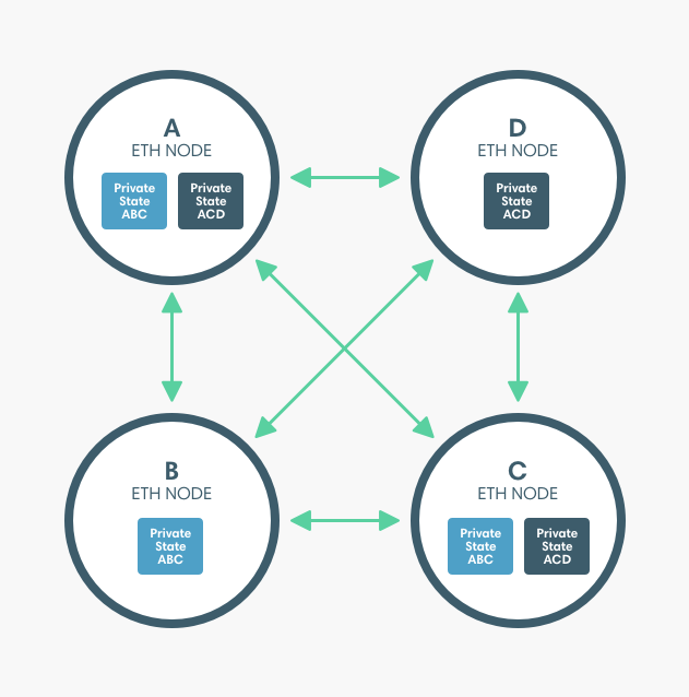 Lưu ý: Các private transaction vẫn được public lên mạng Ethereum và đóng vào block bình thường như các giao dịch public khác. Chỉ khác ở chỗ khi ở trong Privacy group thì các node sẽ sử dụng private state thay vì public state của mạng Ethereum.