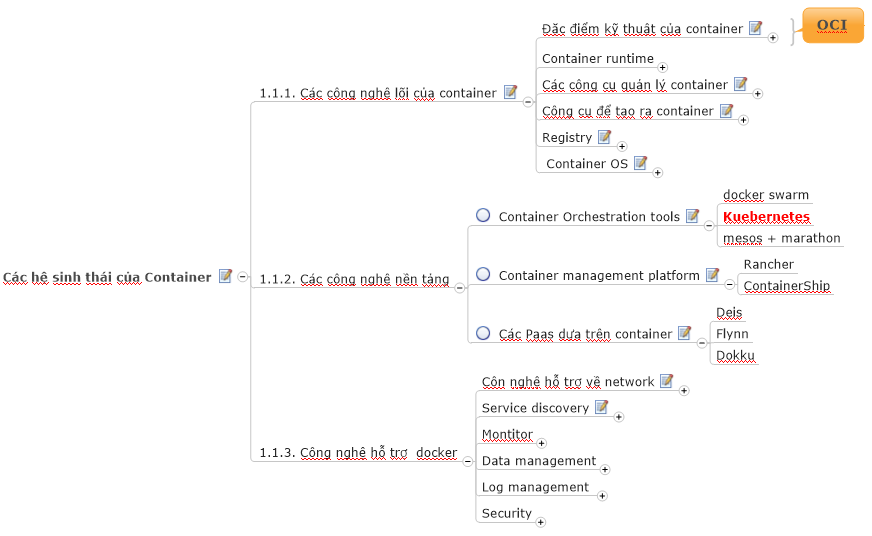 - Phần 2: Các công nghệ về platform liên quan tới container, bao gồm: các sản phẩm để orchestration container (sử dụng để khởi tạo các container theo các cơ chế điều phối), nền tảng để quản lý các container và các nền tảng PaaS dựa trên container.