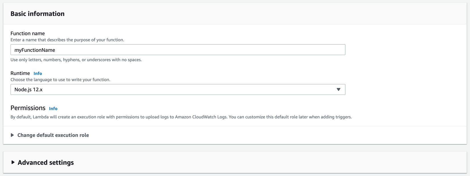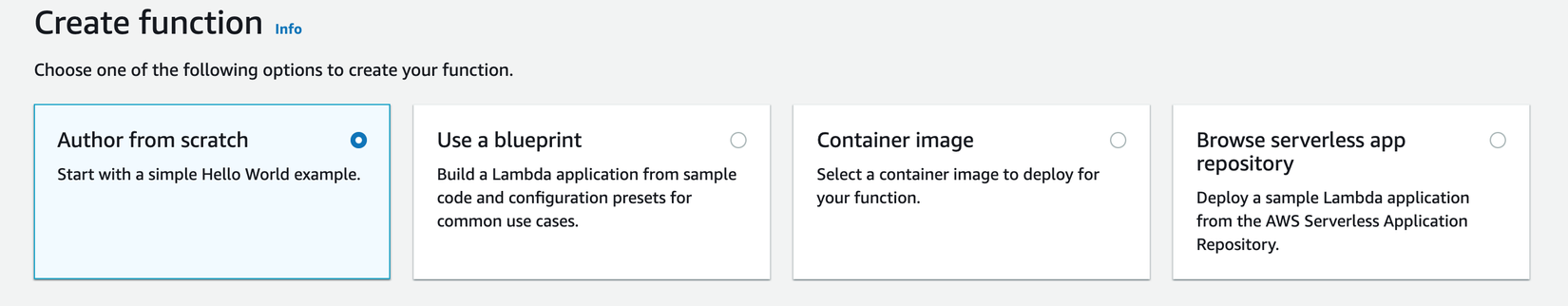 Có rất nhiều tuỳ chọn để tạo 1 Function, để thử nghiệm chúng ta để mặc định là Author from scratch
