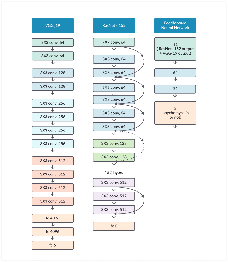 - Hình 3. Tổng cộng có 12 đầu ra từ ResNet-152 và VGG-19 đã được sử dụng làm đầu vào cho mạng có 2 lớp hidden. Đầu ra cuối cùng được tính toán thông qua hai lớp ẩn ( hidden). Việc xếp chồng các lớp sẽ không làm giảm hiệu suất mạng.Với kiến trúc này các lớp phía trên có được thông tin trực tiếp hơn từ các lớp dưới nên sẽ điều chỉnh trọng số hiệu quả hơn.