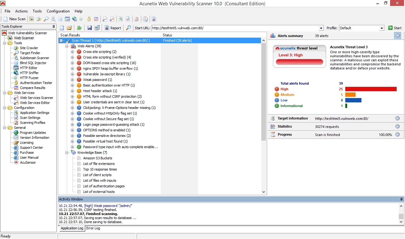 Dưới đây là giao diện kết quả khi scan website bằng acunetix, các bạn có thể xem qua
