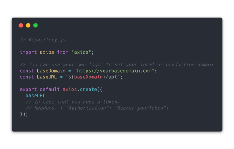 Chúng ta thường sử dụng repository pattern để lấy dữ liệu nhằm tách rời việc lấy dữ liệu và xử lý logic. Mặt khác, chúng ta hay sử dụng factory pattern để mock repository và xử lý logic. Đã bao lần bạn thấy axios được khởi tạo đi khởi tạo lại trong những component?