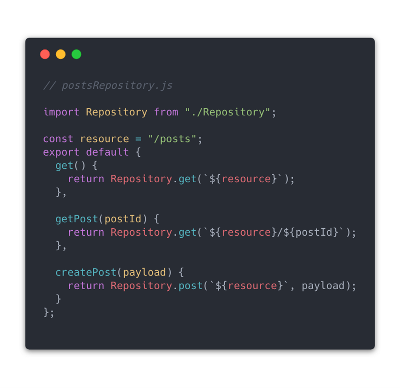 Và khi đó postsRepository.js sẽ trở thành như sau: