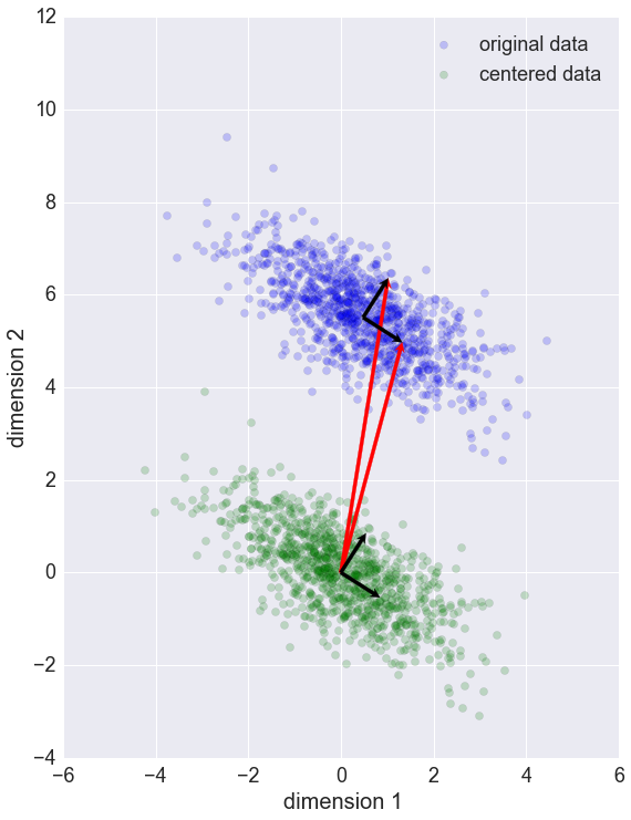 eigenvectors (vector màu đỏ)