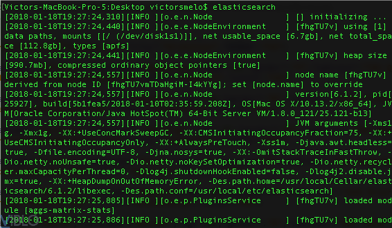 Nếu bạn sử dụng Homebrew thì chỉ cần gõ elasticsearch ở trên terminal thì hệ thống sẽ chạy ngay lập tức