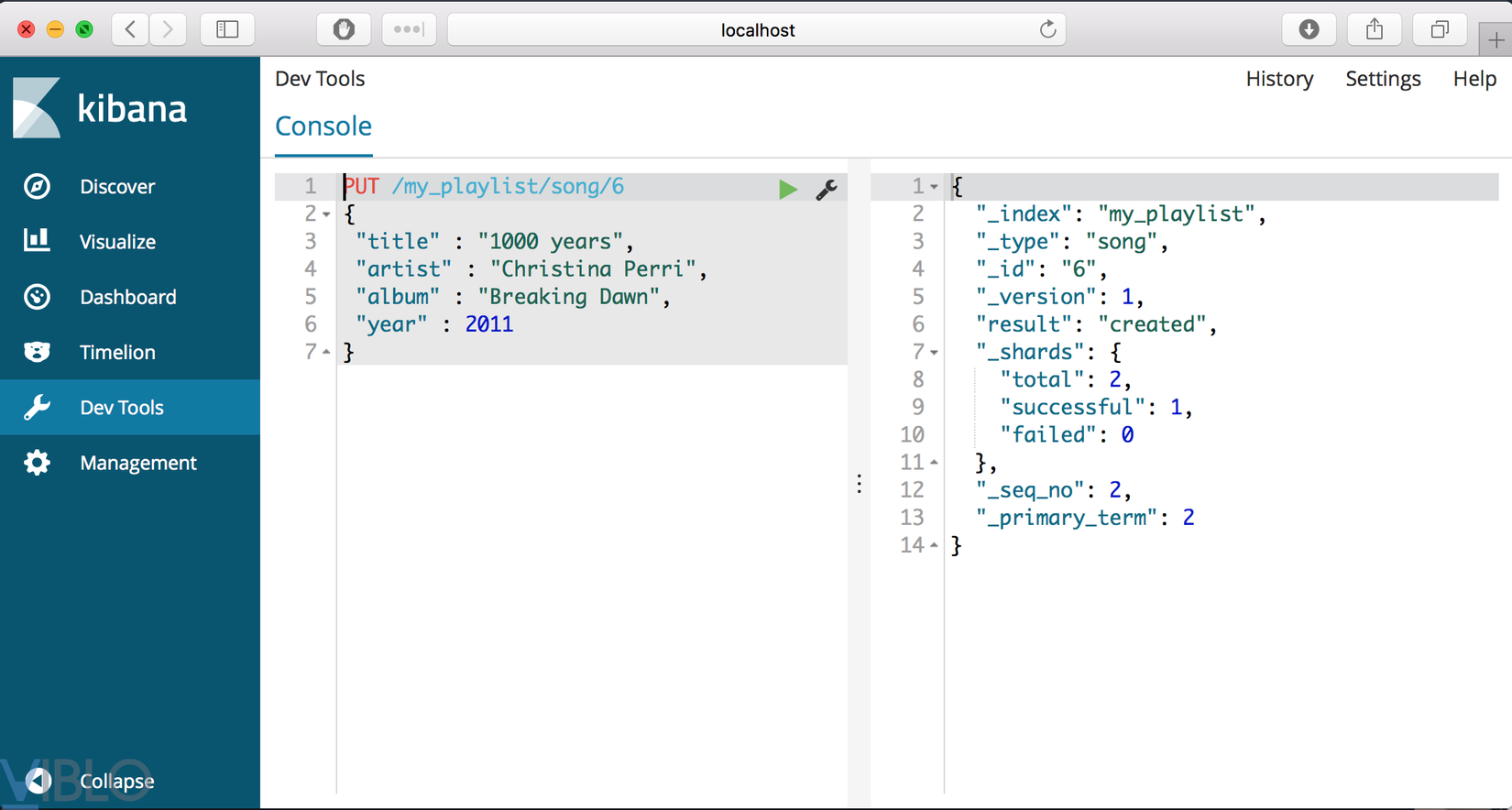 Nghĩa là bạn đã tạo một document data vào trong Elasticsearch. Trong ví dụ này chúng ta có /my_playlist/song/6: