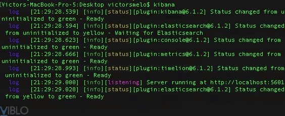 Sau khi chạy xong ElasticSearch thì tần chạy cả Interface Kibana, tương tự như vậy thì mình sẽ chỉ cần chạy kibana nếu đang sử dụng HomeBrew