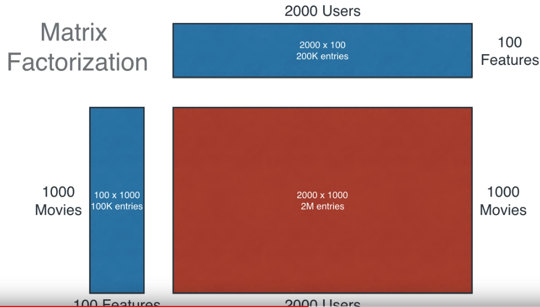 Như bạn thấy, với ma trận lớn ta cần 2 triệu entries để lưu trữ, trong khi việc phân tách ra 2 ma trận sẽ chỉ tốn 300.000 entries