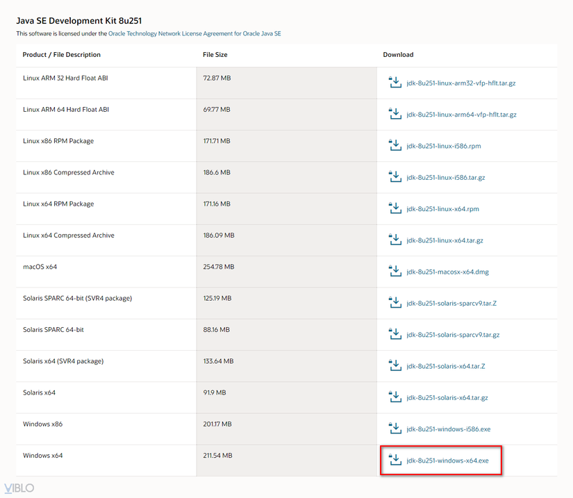 Truy cập link sau: https://www.oracle.com/java/technologies/javase/javase-jdk8-downloads.html