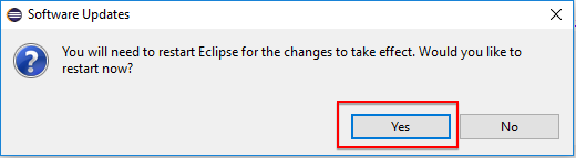 Sau khi quá trình cài đặt ở bước trên đã xong, sẽ có một cửa sổ hiển thị yêu cầu bạn sẽ khởi động lại Eclipse để cập nhật những cài đặt vừa rồi.