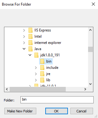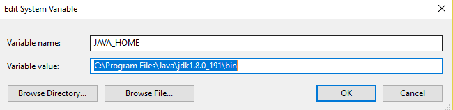 Trong ô Variable value chúng ta sẽ dẫn đến folder bin trong thư mục cài đặt java: C:\Program Files\Java\jdk1.8.0_191\bin