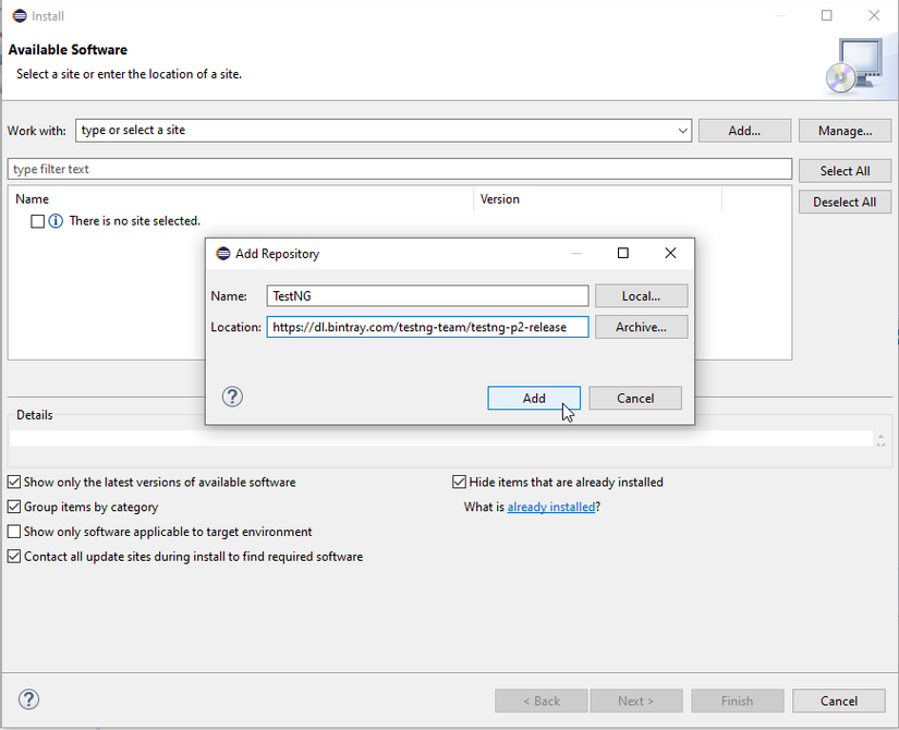 - Location: https://dl.bintray.com/testng-team/testng-p2-release (Link này thì phải lấy chính xác nhé)