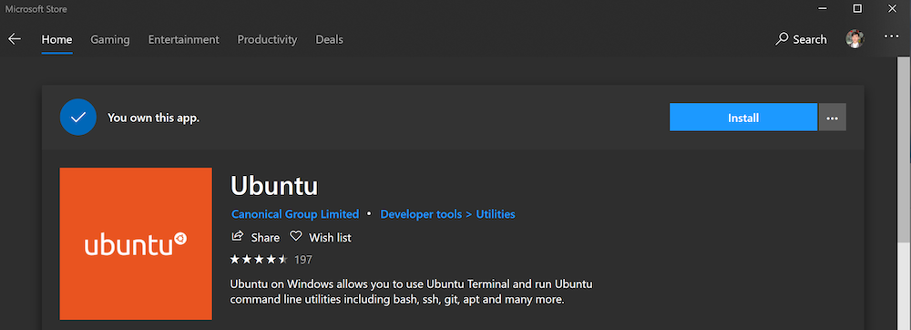 Bấm vào Install để tải về và cài đặt Ubuntu cho WSL