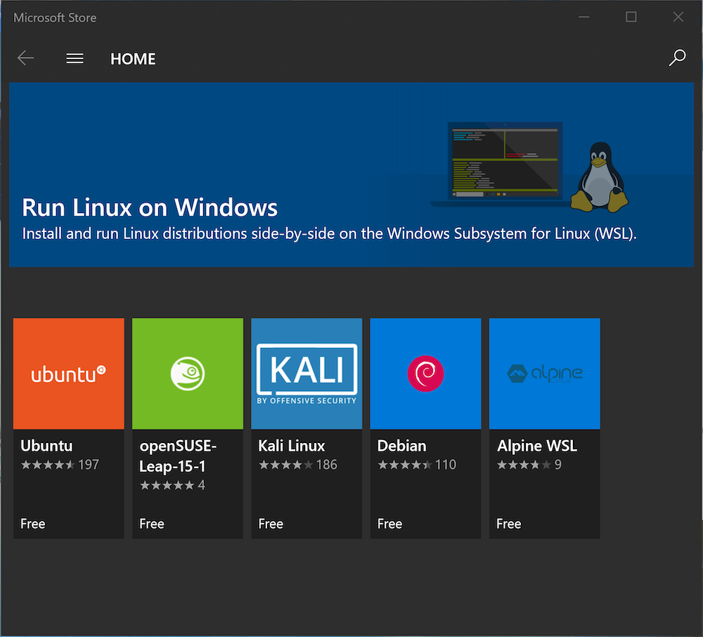 - Chọn sử dụng distro Linux từ Microsoft Store: Hiện giờ đang có các Distro Linux rất gọn nhẹ trên Store sử dụng được ngày như Ubuntu, Debian ...