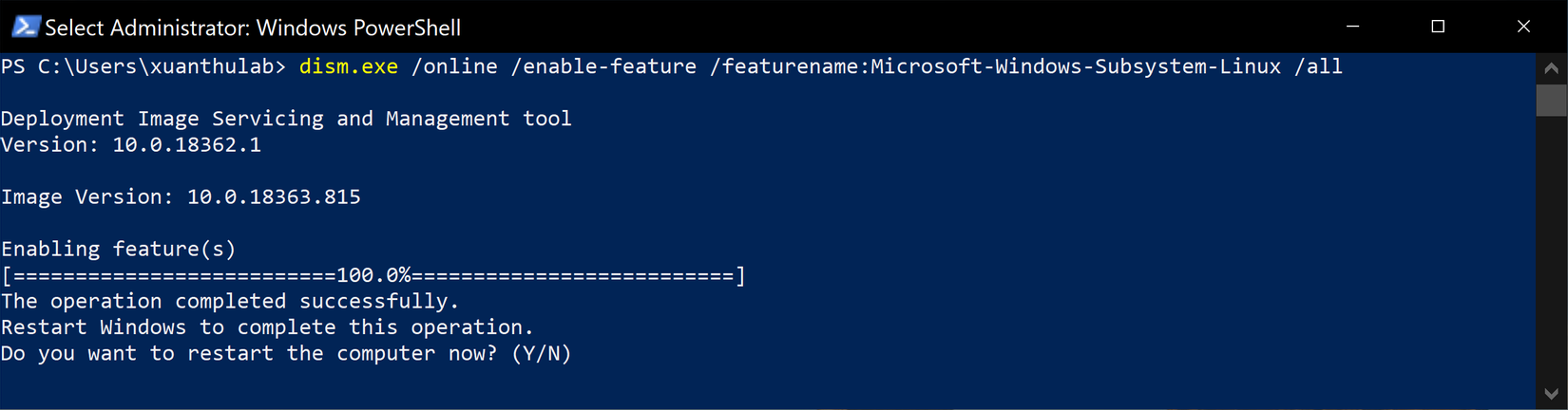 dism.exe /online /enable-feature /featurename:Microsoft-Windows-Subsystem-Linux /all