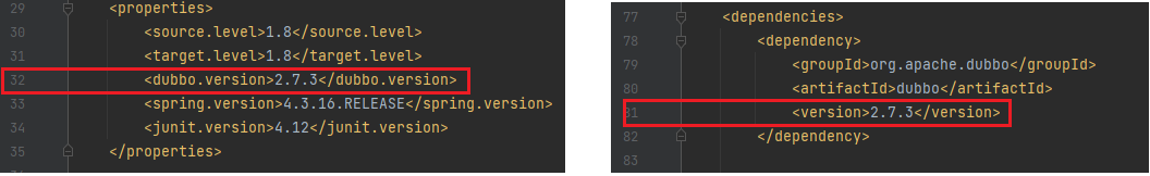 Sau khi load project xong xuôi. Chúng ta sẽ sửa lại phiên bản dubbo thành 2.7.3 để có thể khai thác. Chú ý thêm vào <version>2.7.3</version> ở dòng 81 thì mới có thể thay đổi thành công